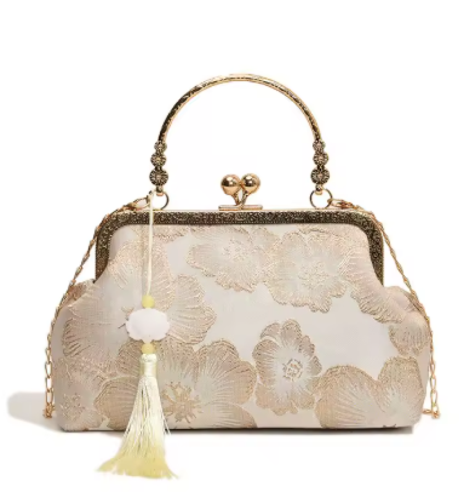 - حقيبة مطرزة مزودة بحمالة كتف مريحة لسهولة الحمل والتنقل.